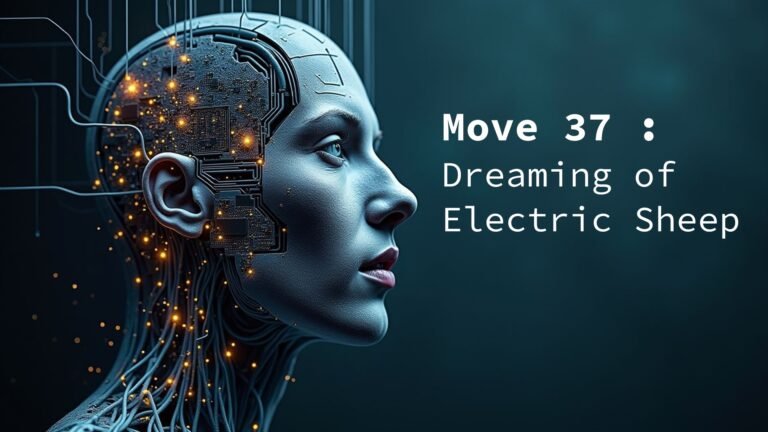 The title of the video refers to both the AI significance of ‘Move 37’ that AlphaGO made, and also the very relevant book ‘Do androids dream of electric sheep?’, which was later made into the film ‘Blade Runner’. The two were added together to create a thought provoking twist.